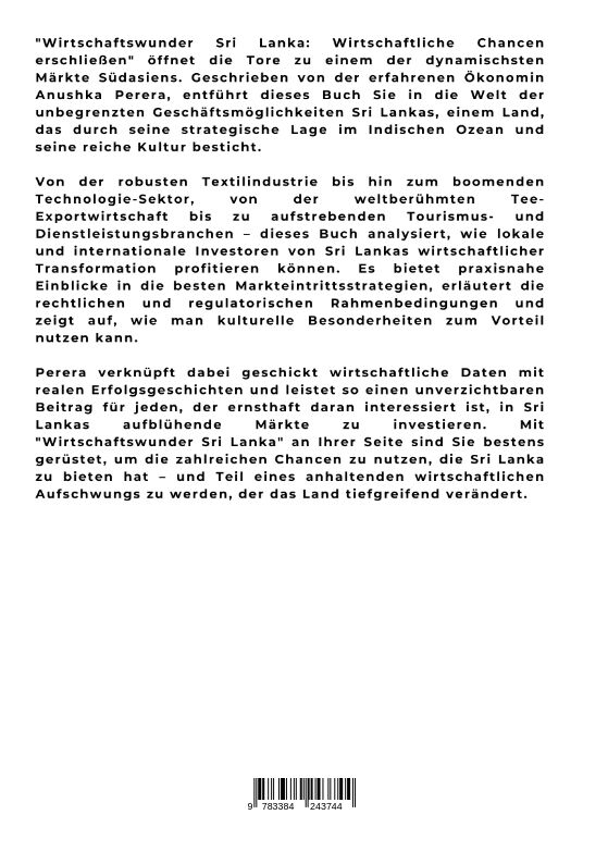 "Wirtschaftswunder Sri Lanka: Wirtschaftliche Chancen erschließen" öffnet die Tore zu einem der dynamischsten Märkte Südasiens. Geschrieben von der erfahrenen Ökonomin Anushka Perera, entführt dieses Buch Sie in die Welt der unbegrenzten Geschäftsmöglichkeiten...