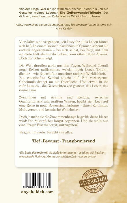 Von der Frage »Wer bin ich wirklich?« bis zur Erkenntnis »Ich bin Gestalter meines Lebens.« Die Zeitenwandel-Trilogie lädt dich ein, zwischen den Zeilen deiner Wirklichkeit zu lesen. »Was, wenn alles, woran du geglaubt hast, Teil eines perfekten Irrtums ist?«...