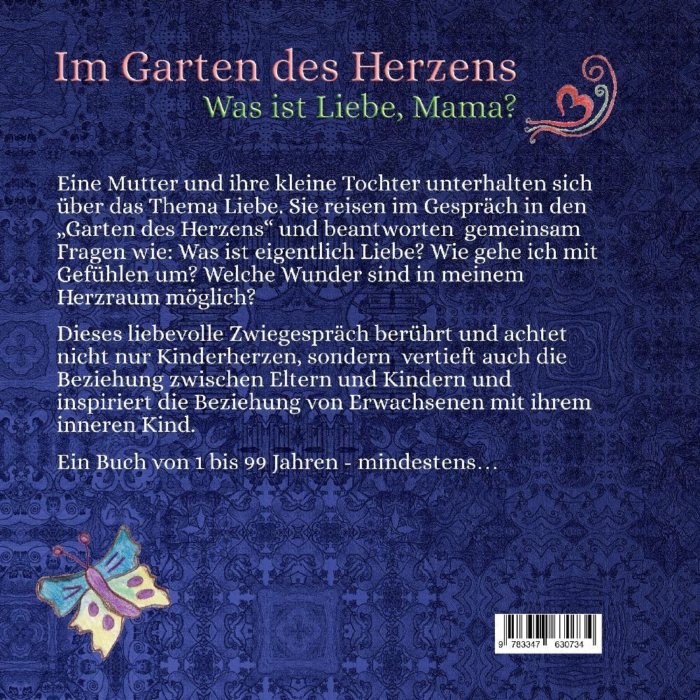 Eine Mutter und ihre kleine Tochter unterhalten sich über das Thema Liebe. Sie reisen im Gespräch in den Garten des Herzens und beantworten gemeinsam Fragen wie: Was ist eigentlich Liebe? Wie gehe ich mit Gefühlen um? Welche Wunder sind in meinem Herzraum mögl...