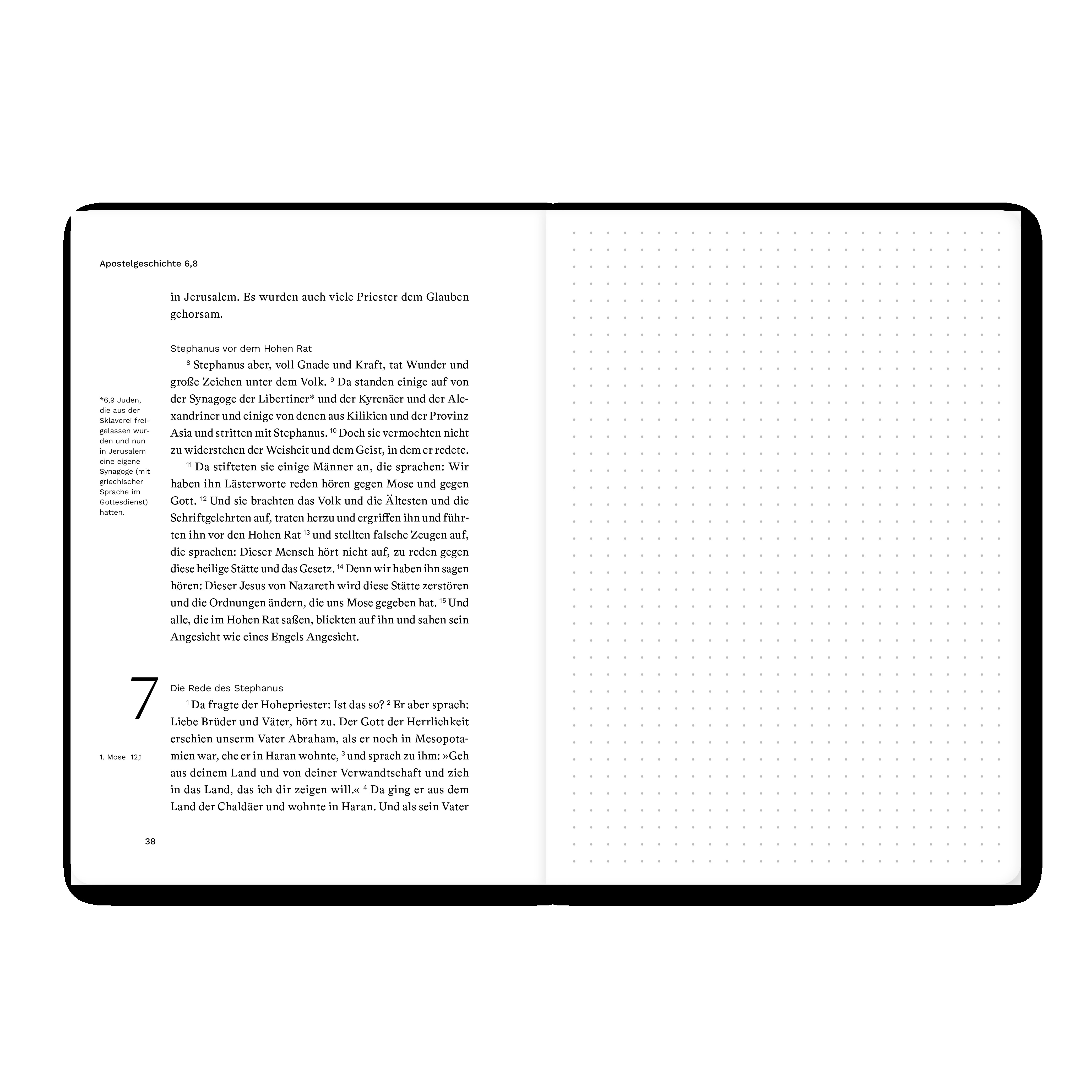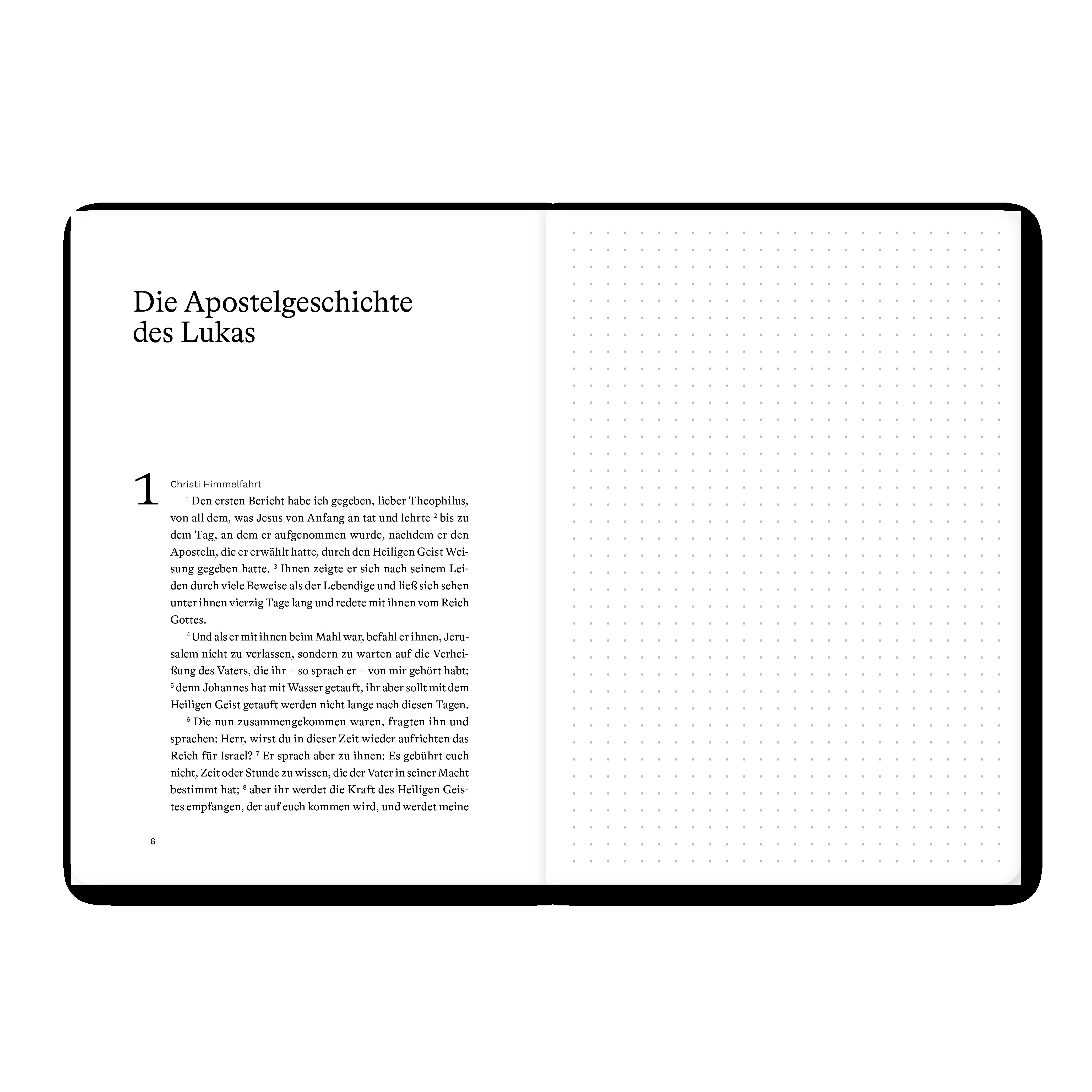 Bibeltext und Notizseite mit Punktraster ideal für die Bibellese, Kleingruppe oder Predigt. Hochwertig ausgestattet, viel Platz zum Schreiben. Dieses Bibeljournal kombiniert den vollständigen Bibeltext eines biblischen Buches (Luther 2017) und eine gegenüberli...