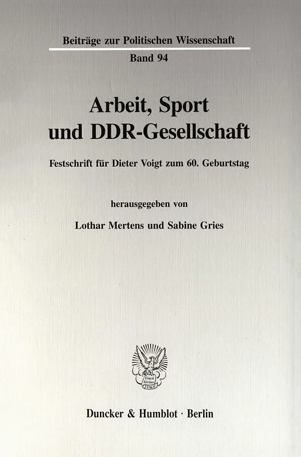 Anläßlich des 60. Geburtstages von Dieter Voigt widmen ihm Freunde und Schüler die vorliegende Festschrift, um einen Wissenschaftler und akademischen Lehrer zu ehren, der sich in verschiedenen Wissenschaftsgebieten, wie der DDR- und vergleichenden Deutschlandf...