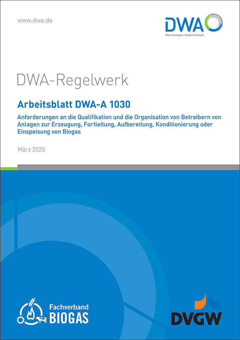 Arbeitsblatt DWA-A 1030 Anforderungen an die Qualifikation und die Organisation von Betreibern von Anlagen zur Erzeugung, Fortleitung, Aufbereitung, Konditionierung oder Einspeisung von Biogas