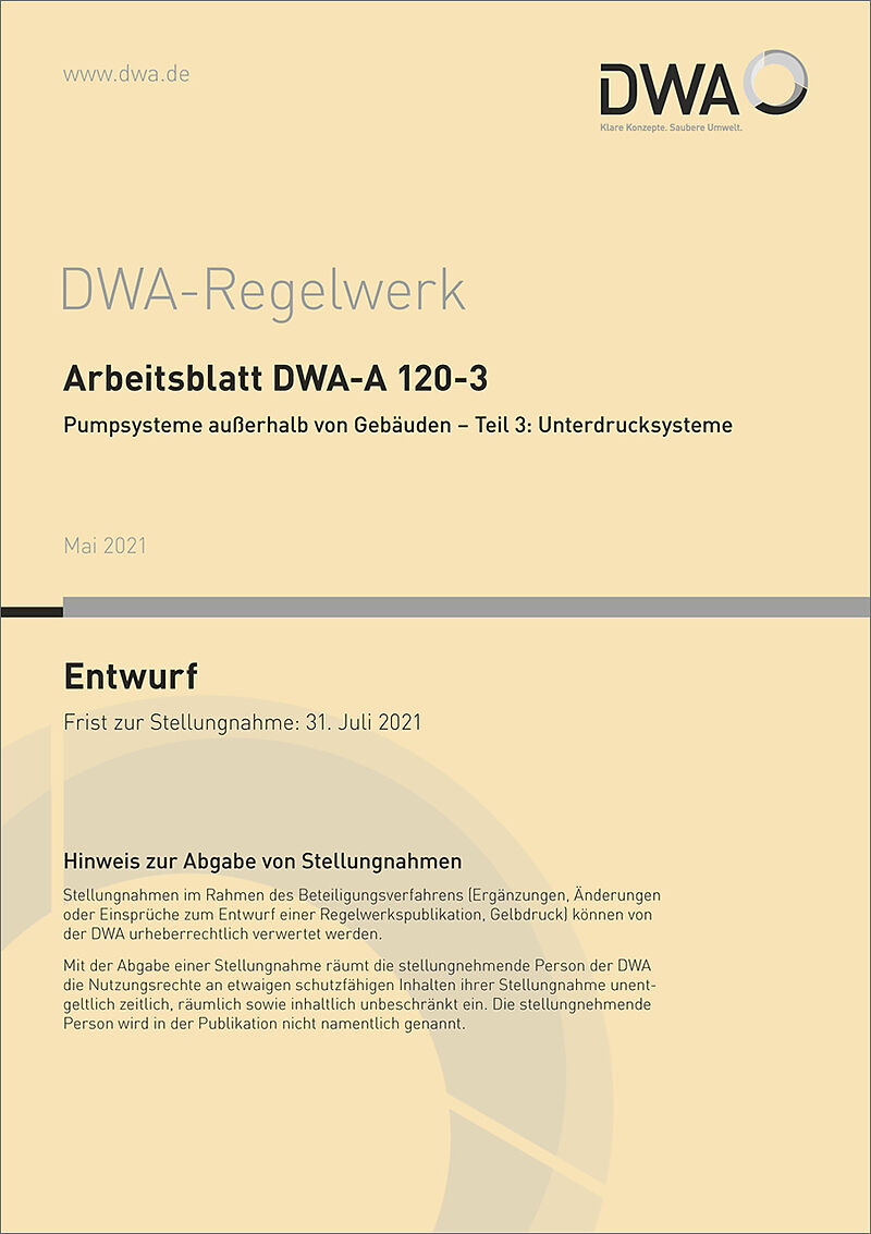Das Arbeitsblatt DWA-A 120-3 ergänzt DIN EN 16932-3 Entwässerungssysteme außerhalb von Gebäuden - Pumpsysteme - Teil 3: Unterdruckentwässerungssysteme und gilt nur in Verbindung mit dieser Norm. Im Arbeitsblatt werden die Hinweise aus der Norm mit weiteren Emp...