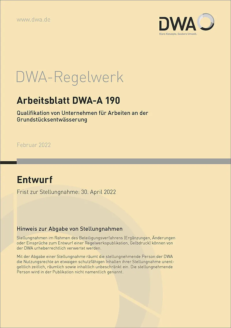 Grundstücksentwässerungen müssen die mit DIN EN 752 definierten Ziele für Entwässerungssysteme erfüllen. Zur Sicherstellung der Zielerreichung sind für Arbeiten an Grundstücksentwässerungen deshalb besondere Anforderungen an die Qualifikation der ausführenden ...