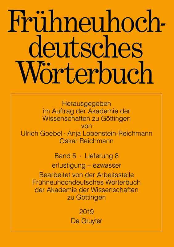 The Early New High German Dictionary is an alphabetically-ordered dictionary of the varieties of High German from the 14th to the 17th century. Autorentext Arbeitsstelle Frühneuhochdeutsches Wörterbuch, Akademie der Wissenschaften zu Göttingen....