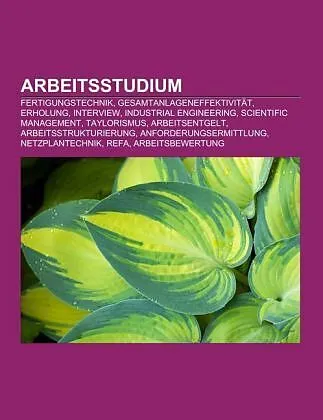 Quelle: Wikipedia. Seiten: 160. Kapitel: Fertigungstechnik, Gesamtanlageneffektivität, Erholung, Interview, Industrial Engineering, Scientific Management, Taylorismus, Arbeitsentgelt, Arbeitsstrukturierung, Anforderungsermittlung, Netzplantechnik, REFA, Arbeit...