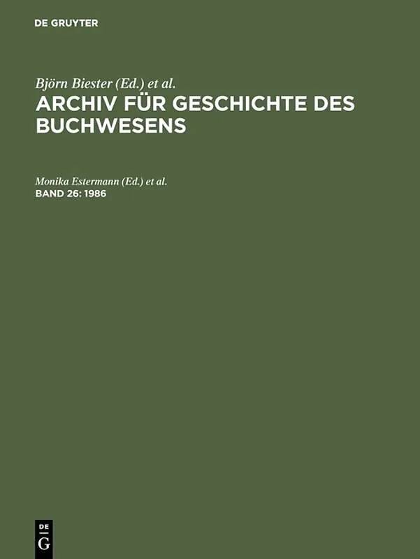 The Archiv für Geschichte des Buchwesens [Archive for the History of the Book] publishes academic papers and source editions covering all subjects related to the book and its history. In addition, the Archiv für Geschichte des Buchwesens contains a broad selec...