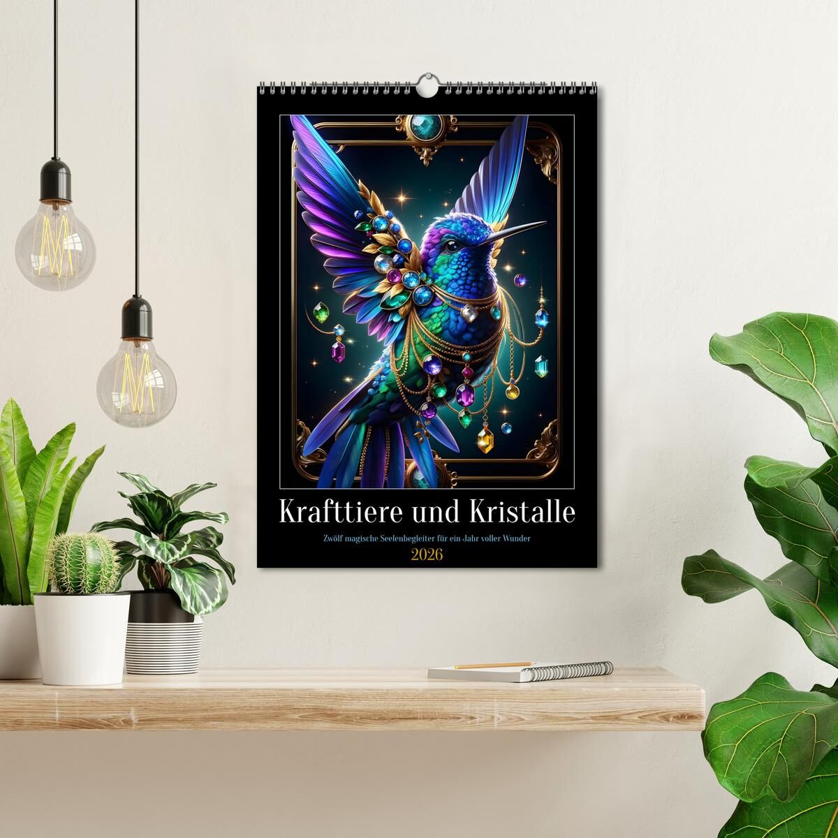Krafttiere und Kristalle (Wandkalender 2026 DIN A3 hoch), CALVENDO Monatskalender
