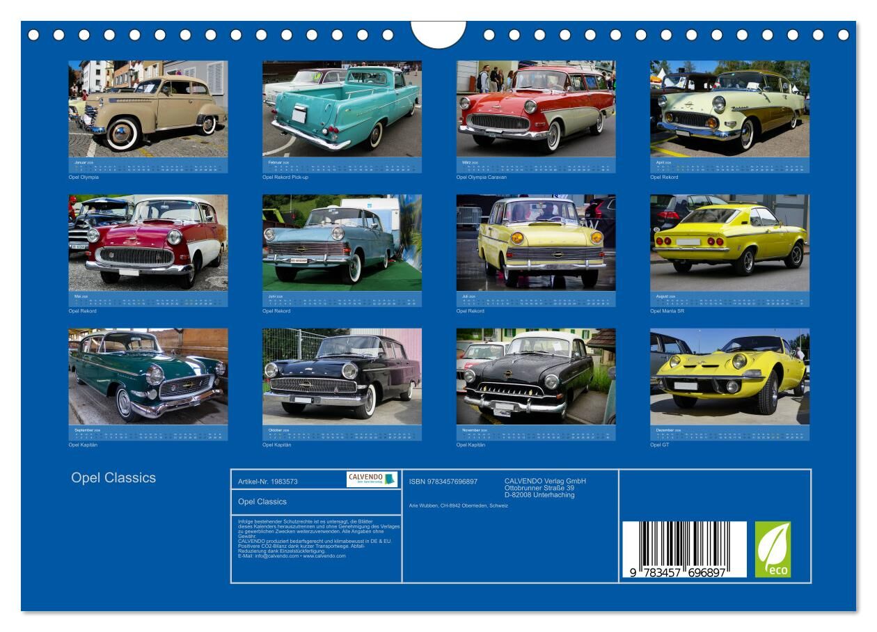 Opel Classics (Wandkalender 2026 DIN A4 quer), CALVENDO Monatskalender
