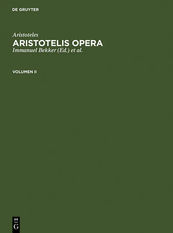 This five-volume edition of Aristotle's works in Greek is (with the exception of Vol. III) a photomechanical copy of the standard edition of Aristotle's works from 1831-1870. Vols. I and II contain Aristotle's works. Volume III presents O. Gigon's revision and...
