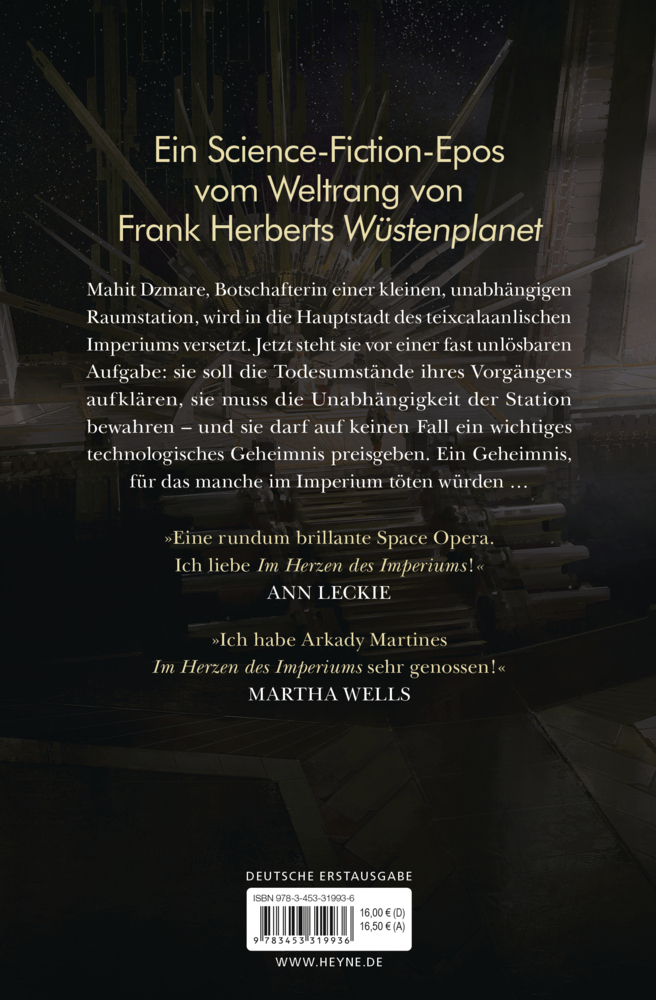 Als Mahit Dzmare, die Botschafterin einer kleinen Raumstation, in der riesigen Hauptstadt des Teixcalaanlischen Imperiums ankommt, muss sie feststellen, dass ihr Vorgänger verstorben ist. Obwohl niemand darüber spricht, ist es ein offenes Geheimnis, dass der B...