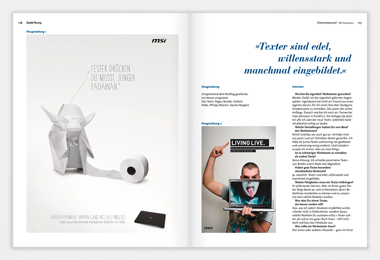 Engere Briefings. Kleinere Budgets. Kritischere Kunden. Die Hürde, die Texter und ihre Auftraggeber nehmen müssen, liegt hoch: Die Botschaft muss noch klarer, die Umsetzung noch prickelnder sein. Mittelmaß in der Werbung wird abgestraft. Niemandem-ernsthaft-we...