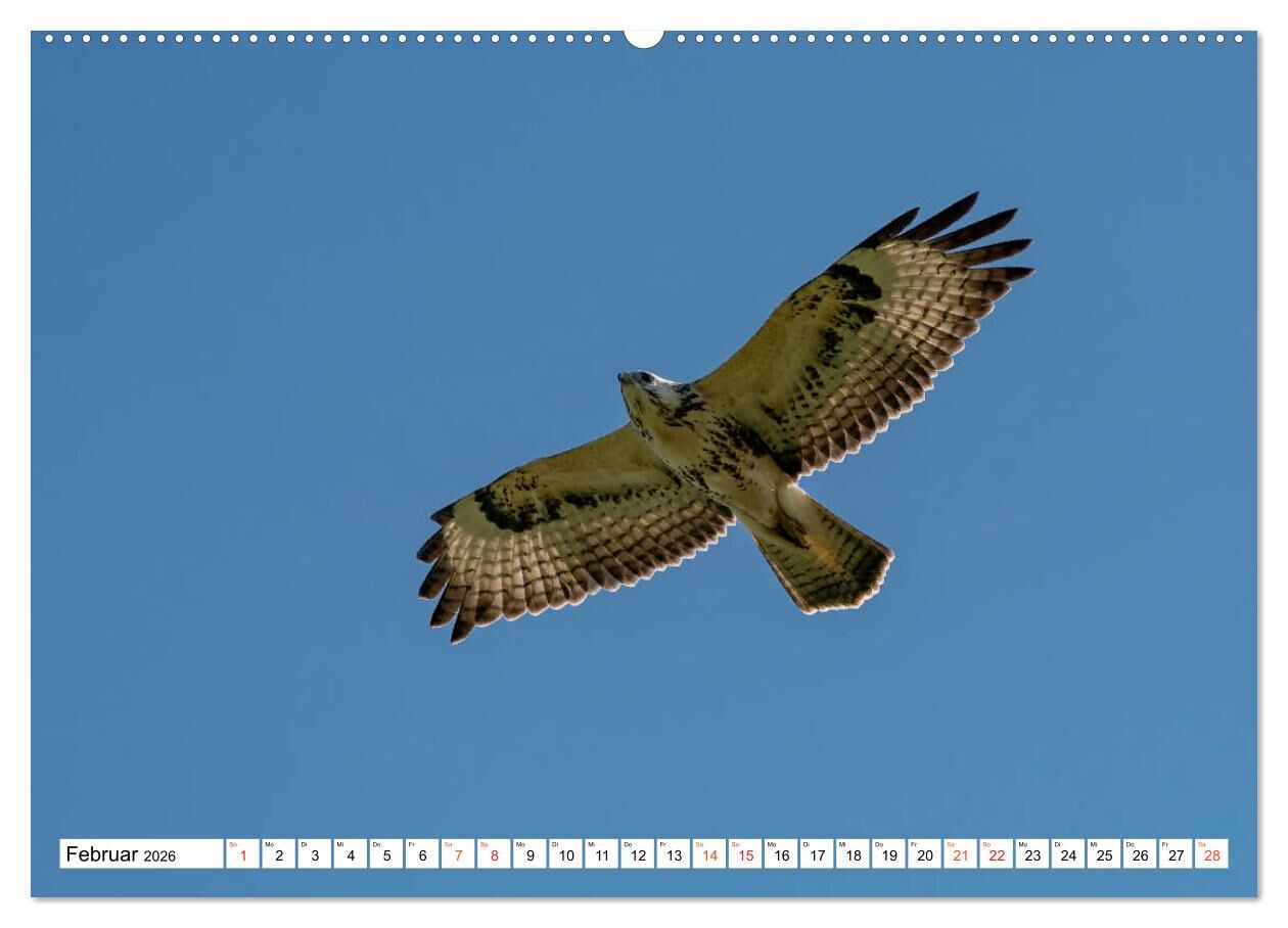 Heimische GREIFVÖGEL Adler Milan Bussard Weihe Sperber (hochwertiger Premium Wandkalender 2026 DIN A2 quer), Kunstdruck in Hochglanz