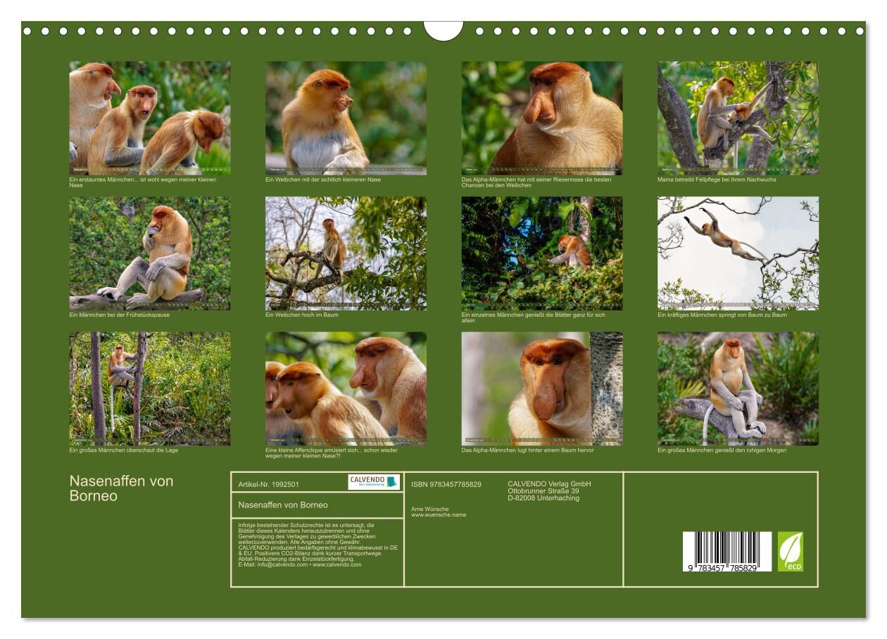 Nasenaffen von Borneo (Wandkalender 2026 DIN A3 quer), CALVENDO Monatskalender