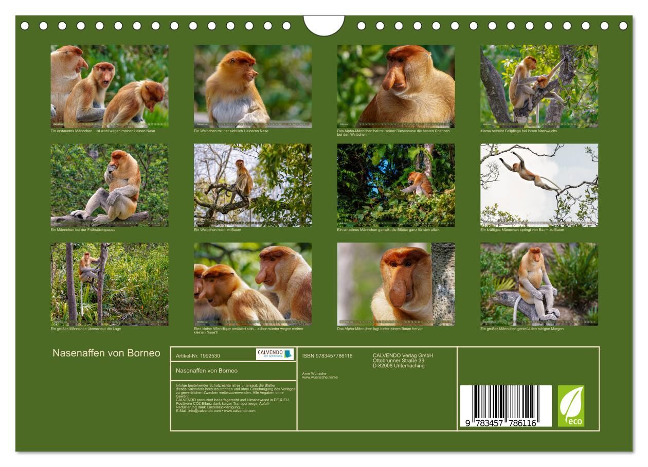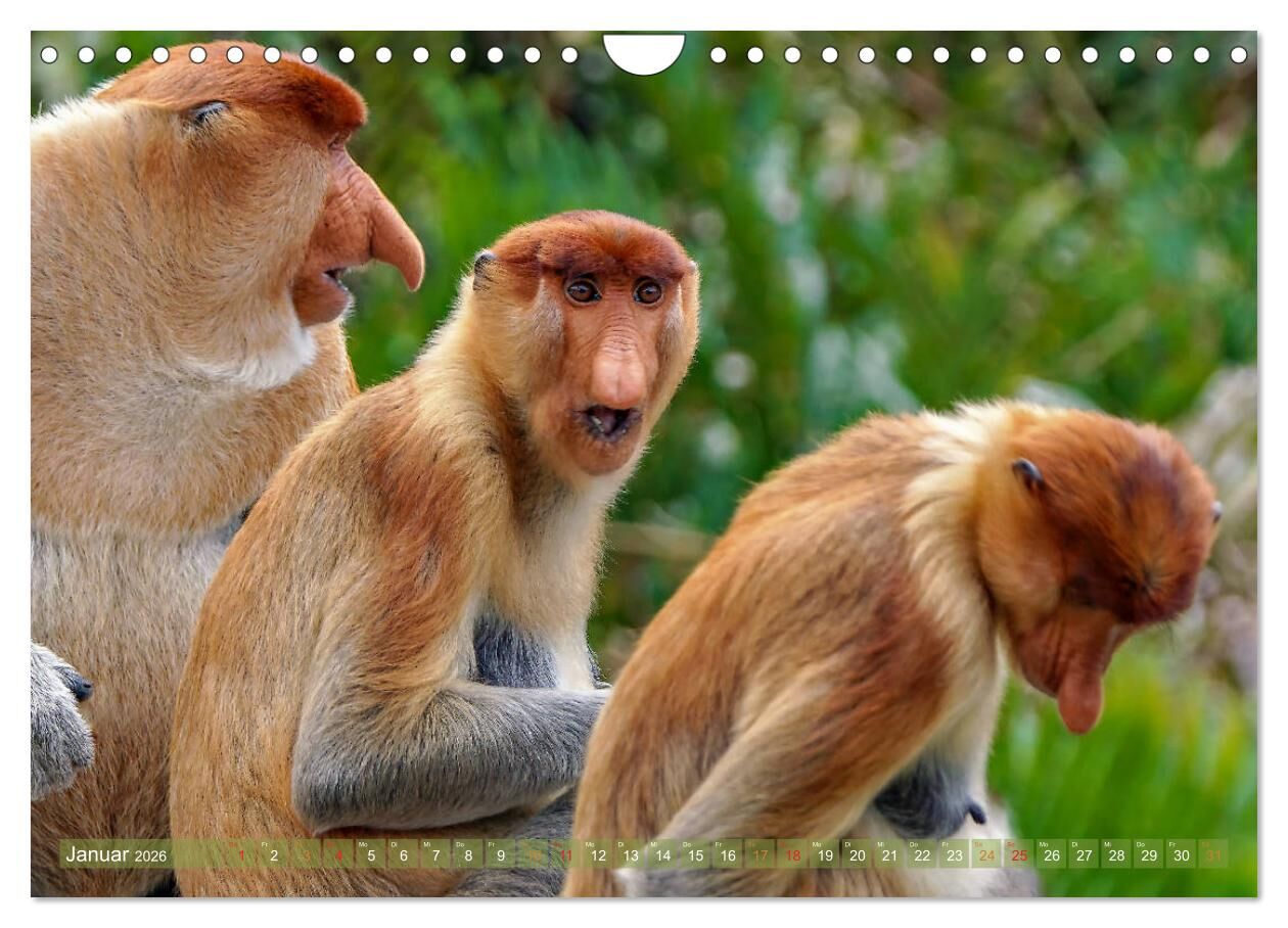 Nasenaffen von Borneo (Wandkalender 2026 DIN A4 quer), CALVENDO Monatskalender