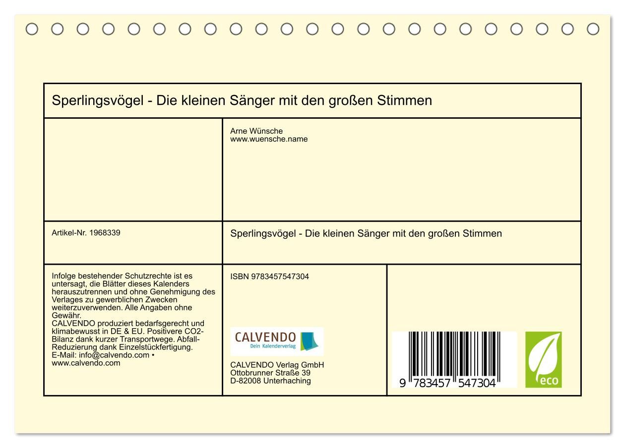 Sperlingsvögel - Die kleinen Sänger mit den großen Stimmen (Tischkalender 2026 DIN A5 quer), CALVENDO Monatskalender