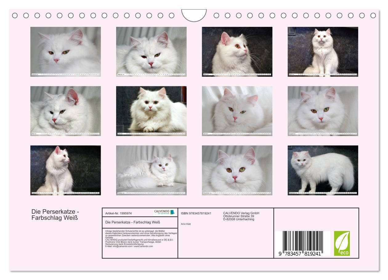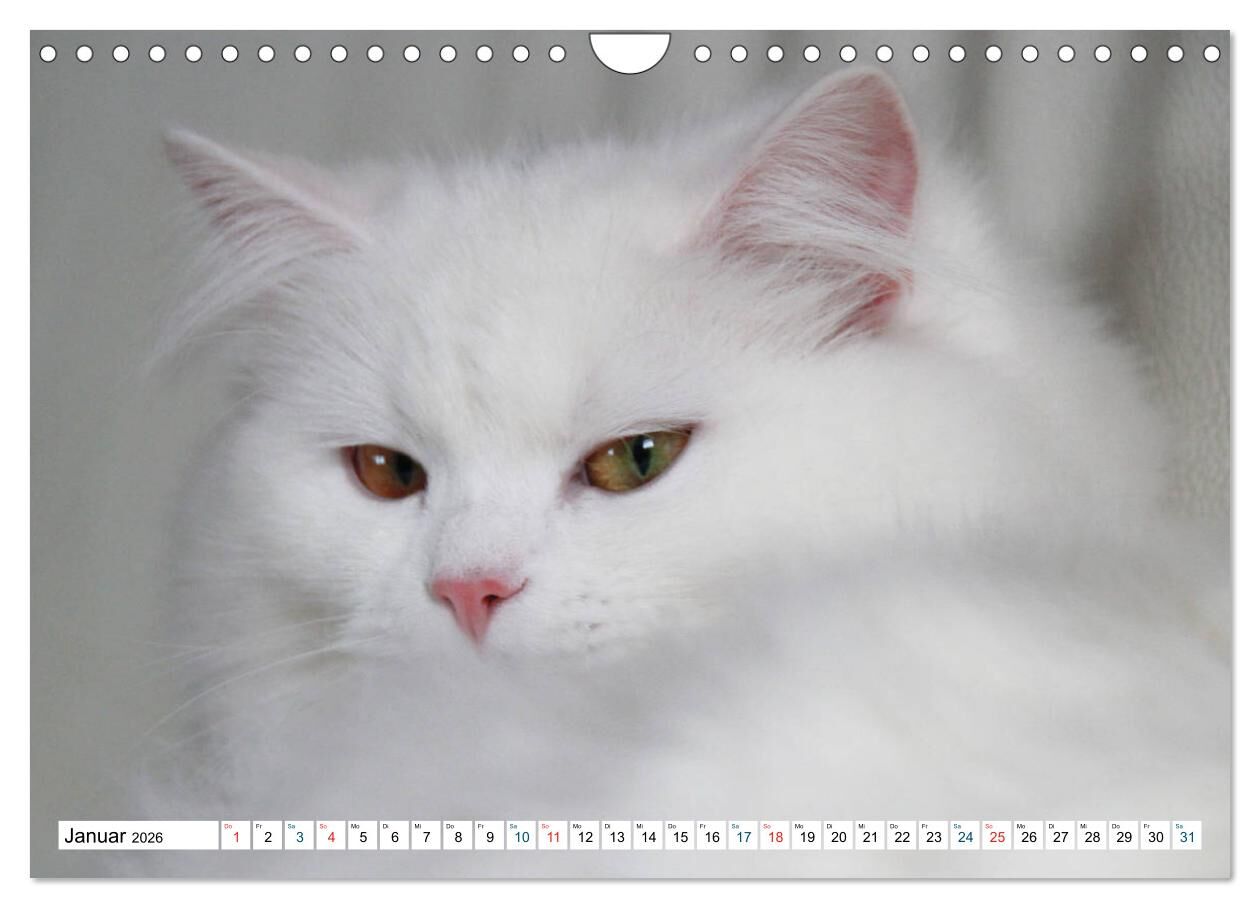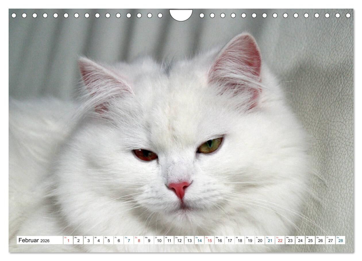Perserkatzen sind eine der beliebtesten Rassekatzen. Sie gibt es in verschiedenen Farben. Habe selber das Glück zwei dieser herrlichen Tiere bei mir zuhause zu haben. Die Farbe der beiden Katzen ist weiß. Einige Bilder habe ich im Kalender verewigt.