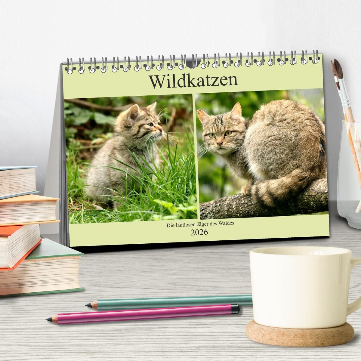 Wildkatzen - Die lautlosen Jäger des Waldes (Tischkalender 2026 DIN A5 quer), CALVENDO Monatskalender