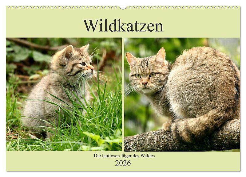 Wildkatzen - Die lautlosen Jäger des Waldes (Wandkalender 2026 DIN A2 quer), CALVENDO Monatskalender