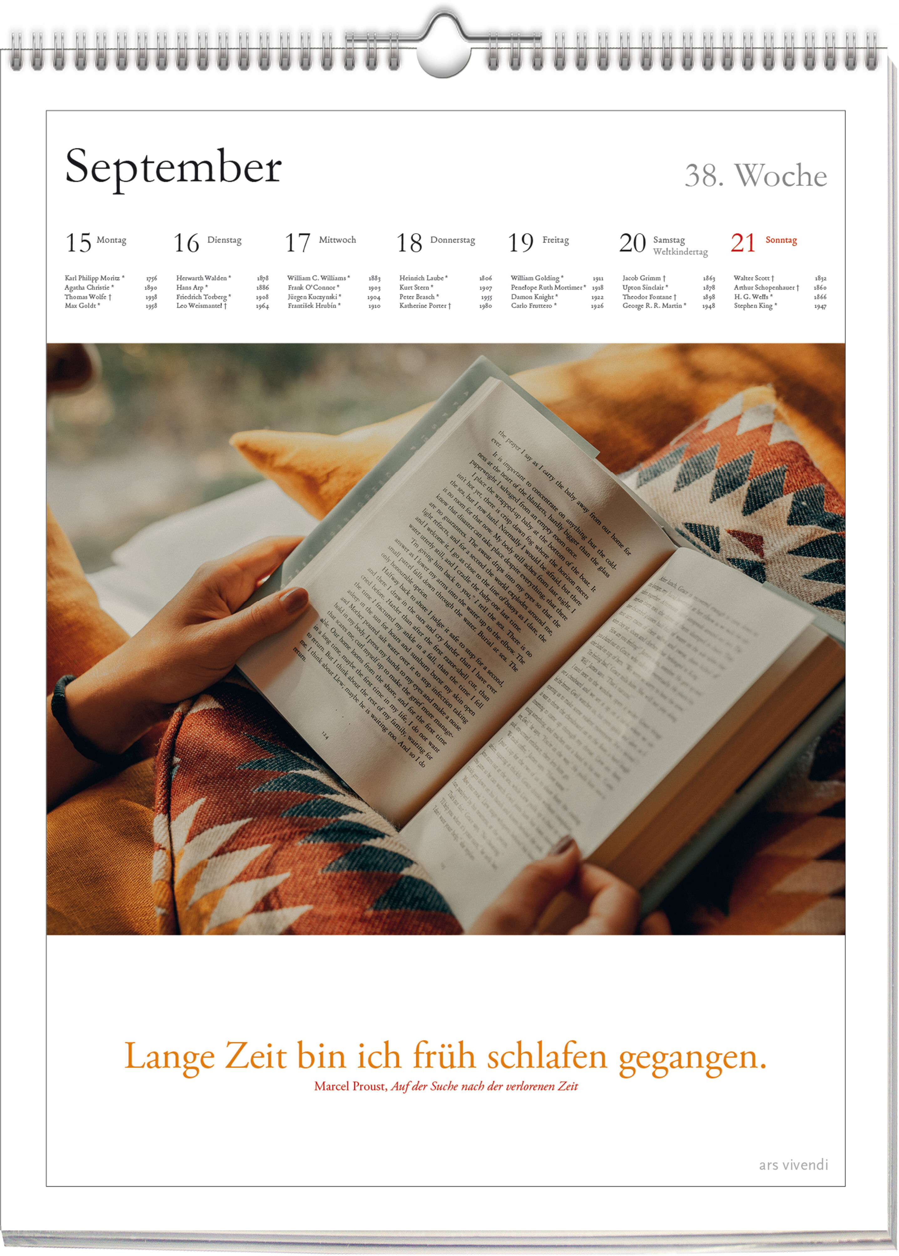 »Erste Sätze haben eine eigentümliche Magie. Ich kann heute noch von vielen Büchern, die ich gelesen habe, den ersten Satz auswendig.« Robert Menasse Bewährte Kalender-Qualität von ars vivendi - Herstellung, Druck und Verarbeitung in Deutschland - 12 Monatsbl...