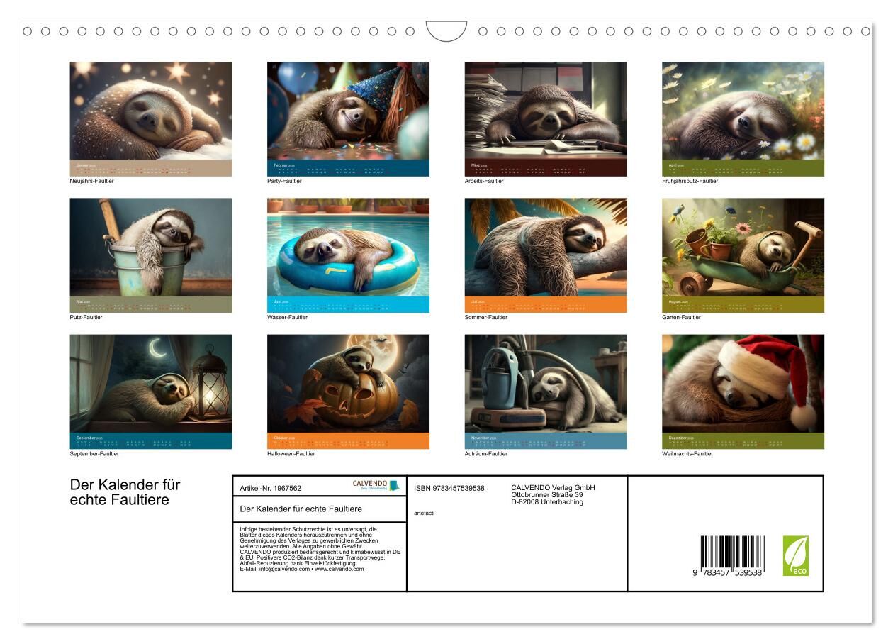 Der Kalender für echte Faultiere (Wandkalender 2026 DIN A3 quer), CALVENDO Monatskalender