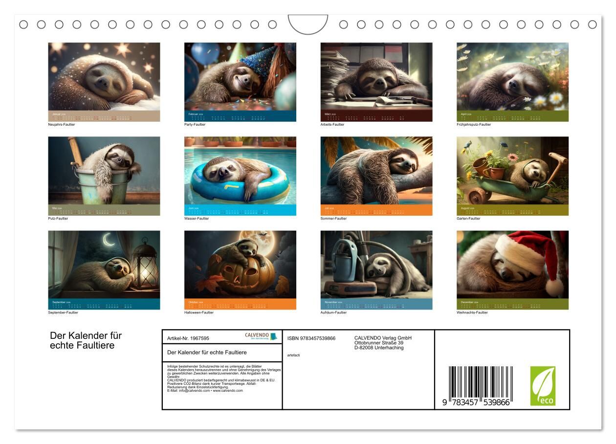 Der Kalender für echte Faultiere (Wandkalender 2026 DIN A4 quer), CALVENDO Monatskalender