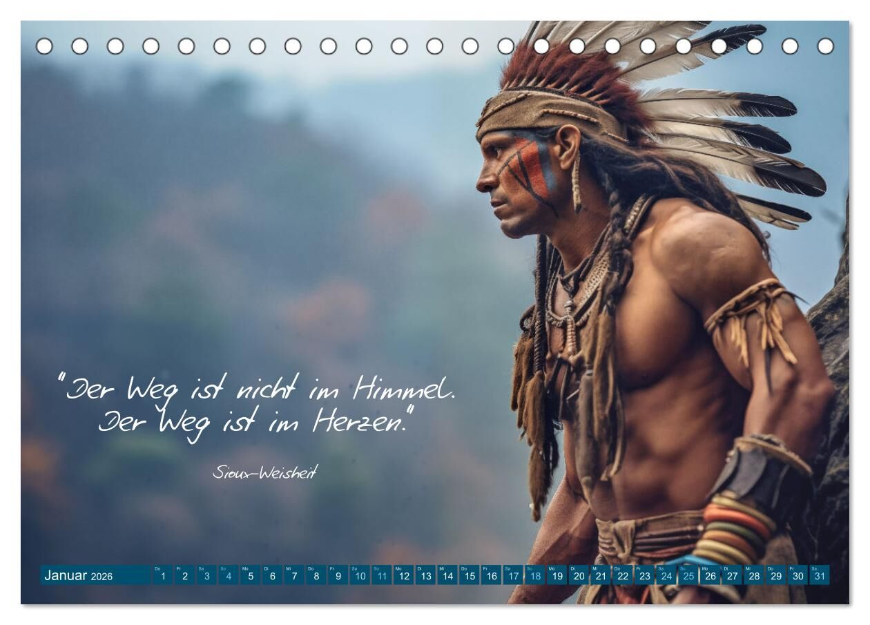 Tauchen Sie ein in die tiefen Weisheiten der indianischen Kultur mit unserem faszinierenden Indianer-Kalender. Jeder Monat schenkt Ihnen einen weisen indianischen Spruch mit einem passenden von künstlicher Intelligenz geschaffenen Motiv.