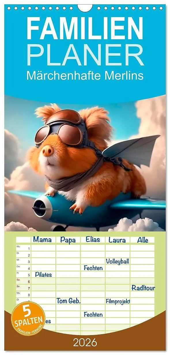 Familienplaner 2026 - Märchenhafte Merlis - Schweinegeile Illustrationen mit 5 Spalten (Wandkalender, 21 x 45 cm) CALVENDO