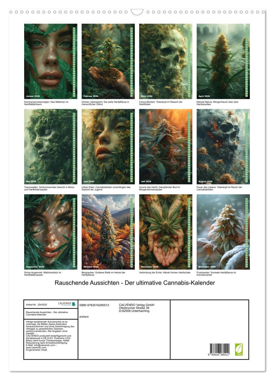 Rauschende Aussichten - Der ultimative Cannabis-Kalender (Wandkalender 2026 DIN A2 hoch), CALVENDO Monatskalender