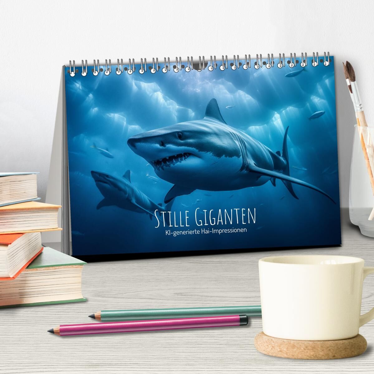 Stille Giganten - KI-generierte Hai-Impressionen (Tischkalender 2026 DIN A5 quer), CALVENDO Monatskalender