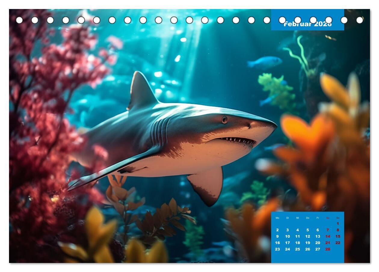 Entdecken Sie die majestätische Welt der Haie mit unserem exklusiven Haikalender. Jeden Monat offenbart sich eine neue Seite dieser faszinierenden Meeresbewohner. Von der kraftvollen Eleganz bis hin zur geheimnisvollen Aura dieser eindrucksvollen Tiere - erleb...