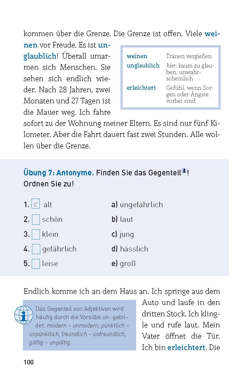 Sie lernen gerade Deutsch und möchten Ihre Sprachkenntnisse verbessern oder vorhandenes Wissen auffrischen? Sie wollen dabei unterhalten werden und Wissenswertes zu Land und Sprache erfahren? Sie lieben fesselnde Geschichten und wollen authentische Texte von muttersprachlichen Autorinnen lesen? Dann sind unsere Sprachwelten Kurzgeschichten genau das Richtige für Sie. In "Ein Haus am Meer" erwarten Sie vier kurzweilige Geschichten von zwei verschiedenen Autorinnen, die speziell für Deutsch-Anfängerinnen ab dem Niveau A1 und Deutsch als Fremdsprache (DaF) aufbereitet wurden. Mit dem einzigartigen Lernkonzept erweitern Sie spielerisch Ihre Sprachkompetenzen. Tauchen Sie in die deutsche Sprachwelt ein und verbessern Sie ganz nebenbei Ihren Wortschatz und vertiefen Sie Ihre Grammatikkenntnisse. Es gibt auch viel Wissenswertes rund um Land und Leute zu entdecken. Die speziell konzipierten, thematischen Übungen verbinden sich mit unterhaltsamer Lektüre und sorgen schnell für Erfolgserlebnisse. So geht Sprachenlernen!
