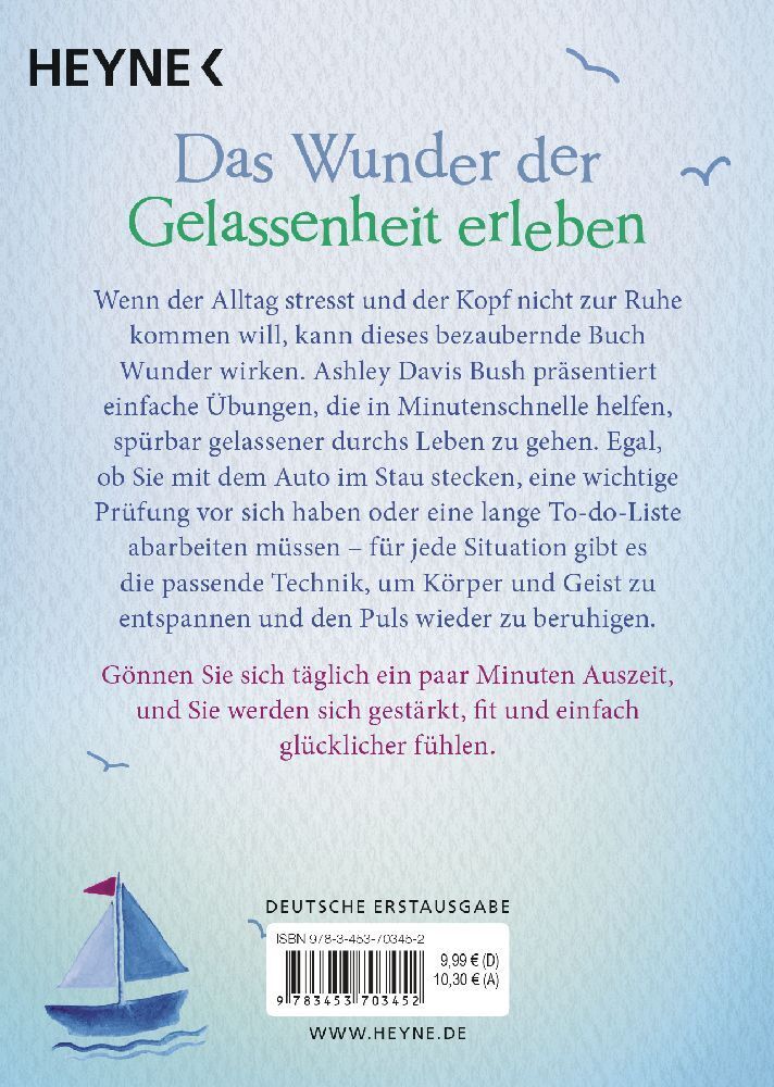 Das Wunder der Gelassenheit erleben Wenn der Alltag stresst und der Kopf nicht zur Ruhe kommen will, kann dieses bezaubernde Buch Wunder wirken. Ashley Davis Bush präsentiert einfache Übungen, die in Minutenschnelle helfen, spürbar gelassener durchs Leben zu g...