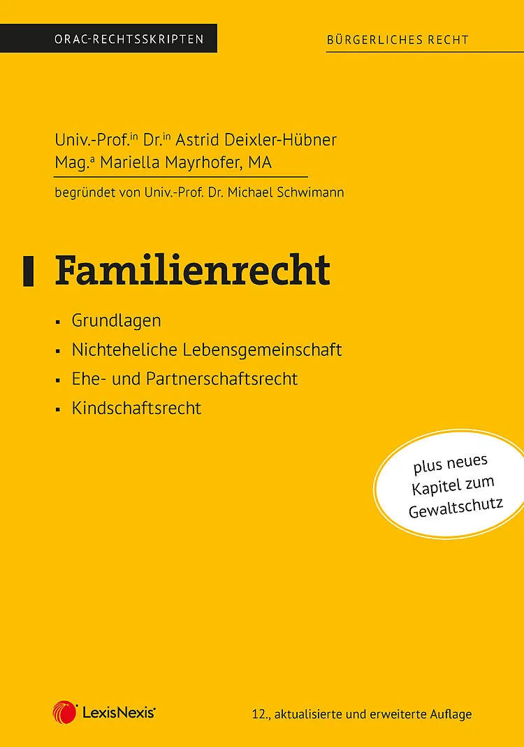 In seiner bereits 12. Auflage ist das von Univ.-Prof. Dr. Michael Schwimann begründete und von Univ.-Prof.in Dr.in Astrid Deixler-Hübner und Mag.a Mariella Mayrhofer fortgeführte Skriptum Familienrecht eine gewohnt topaktuelle und ideale Lernunterlage für ein...