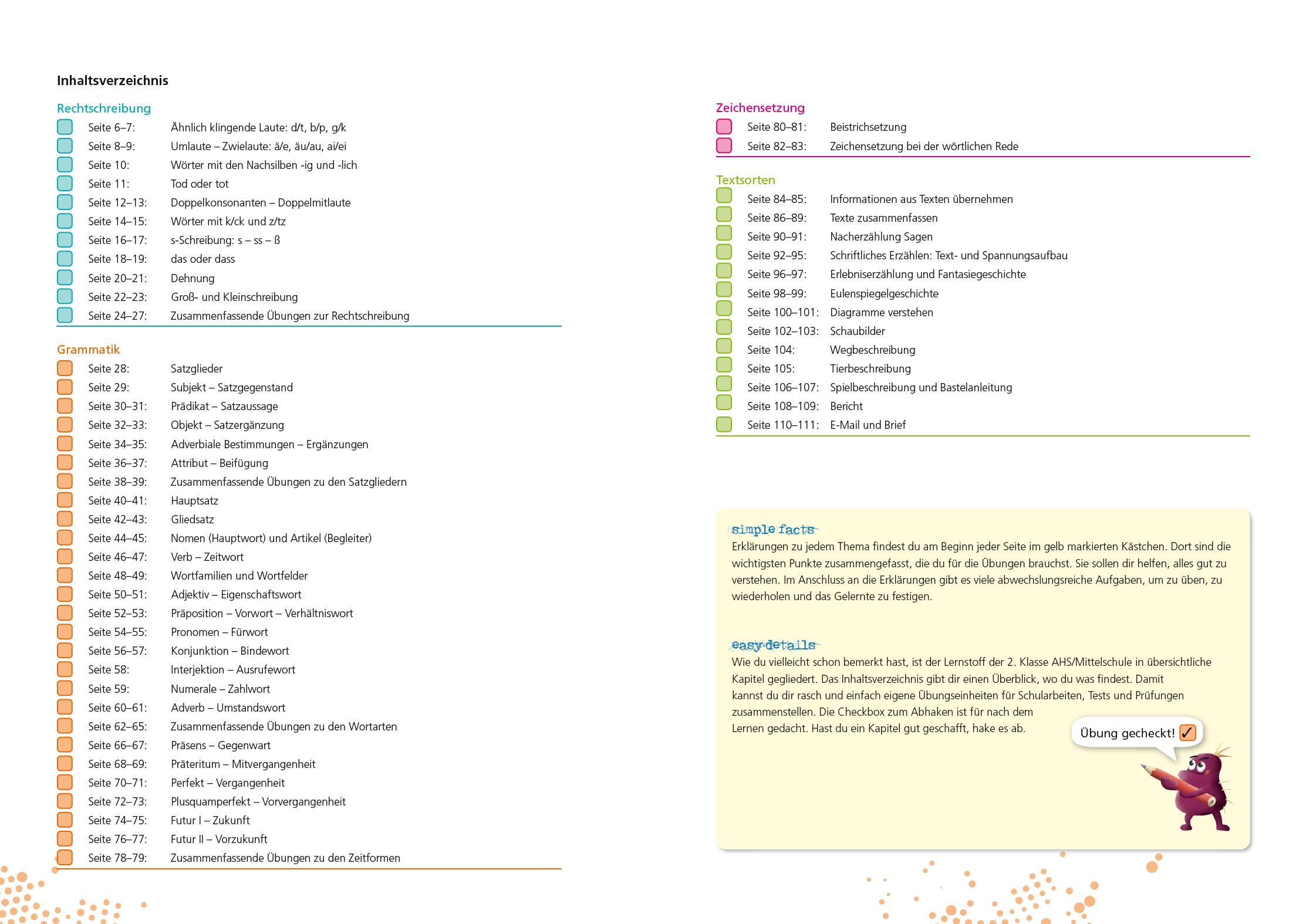 Deutsch 2. Klasse AHS/Mittelschule Schwerpunkte Rechtschreibung: Laute, Doppelkonsonanten, Dehnung, s-Schreibung, das/dass, Groß- und Kleinschreibung, Unterscheidung k/ck, z/tz, -ig/-lich Schwerpunkte Grammatik: Satzglieder, Subjekt, Prädikat, Objekt, adverbi...