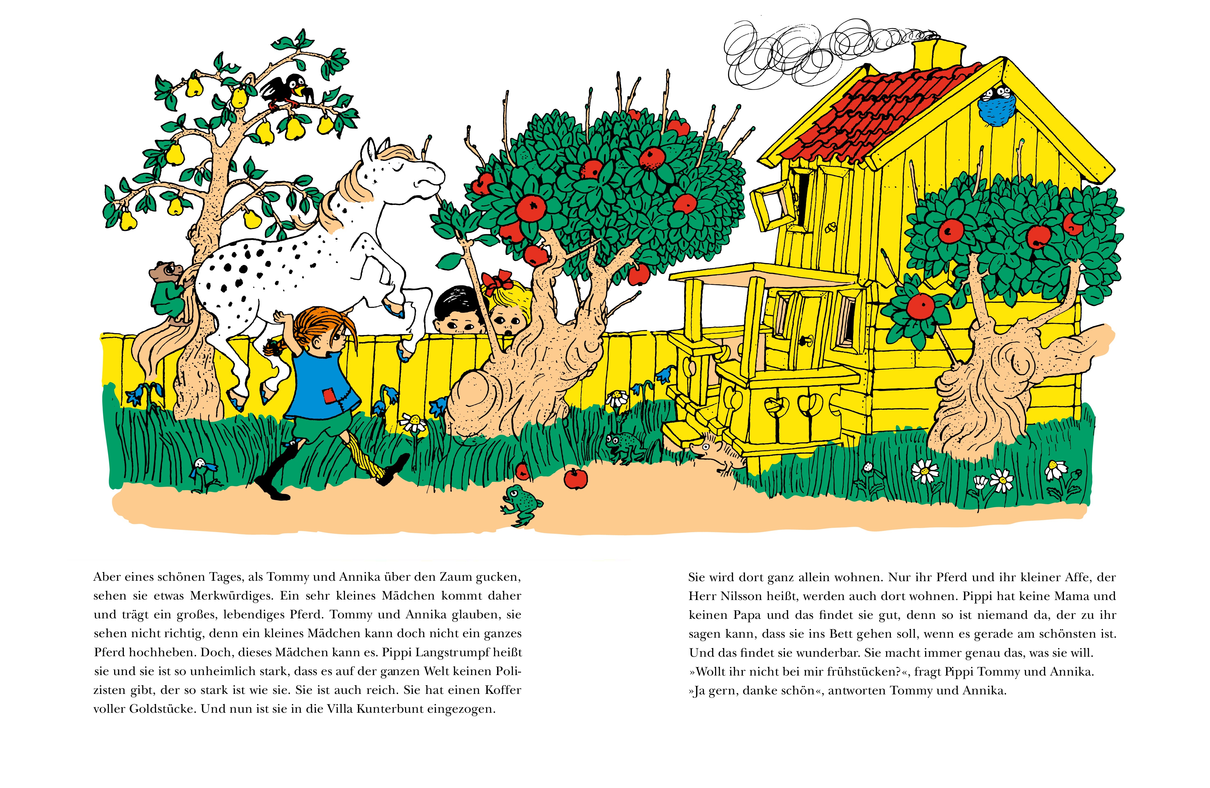 Die freche und unheimlich starke Pippi Langstrumpf, der Affe Herr Nilsson, das Pferd und die beiden Nachbarskinder Annika und Thomas - hier stellen sie sich den kleineren Kindern vor, die noch nicht lesen können, aber Spaß daran haben, lustige bunte Bilder an...