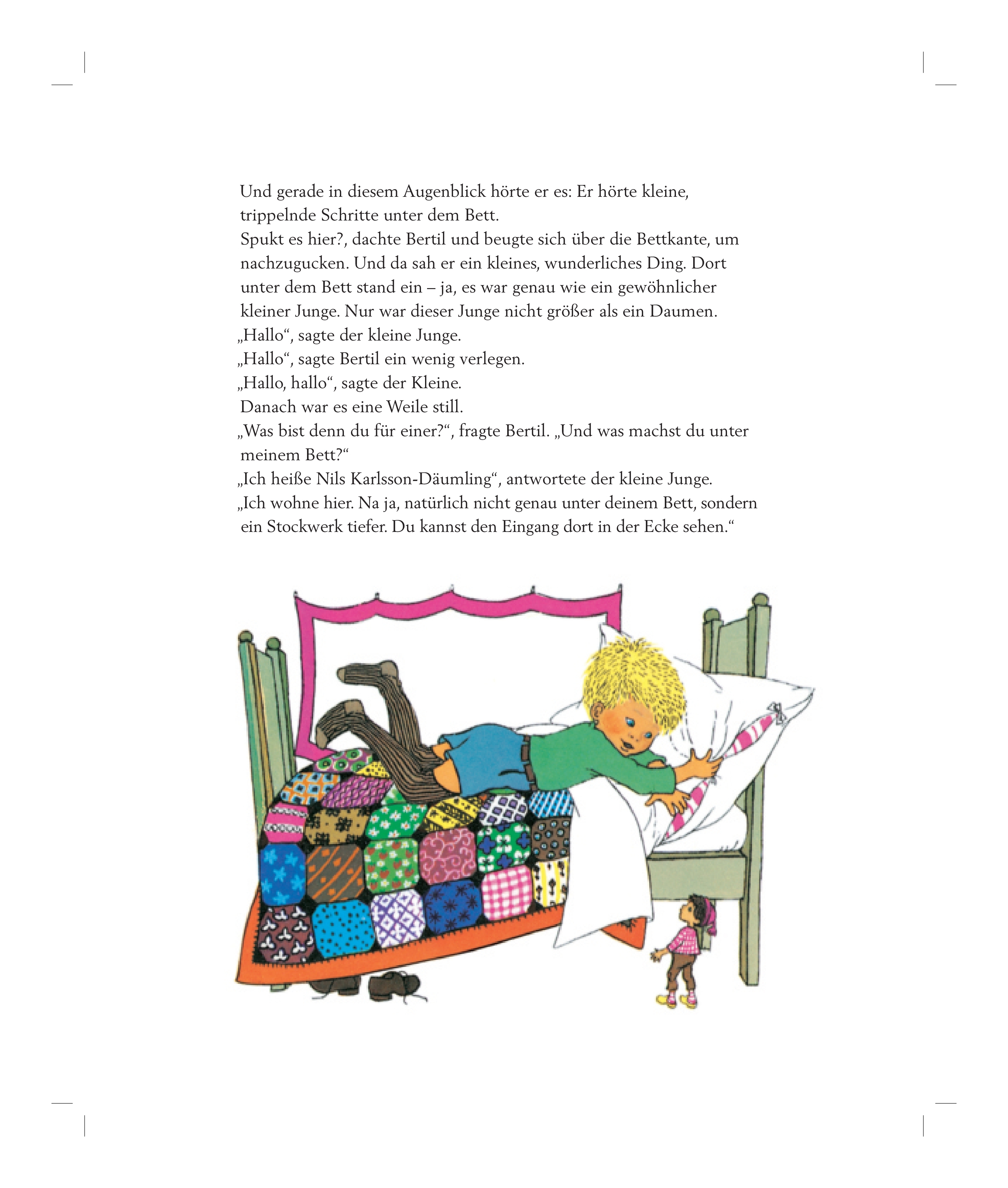 In "Nils Karlsson-Däumling" findet Bertil einen winzigen Freund namens Nils unter seinem Bett, der ihm die Tür zu einer Welt voller Abenteuer öffnet; durch ein Zauberwort kann Bertil so klein werden wie Nils, und gemeinsam erkunden sie Nils' Zuhause, teilen S...