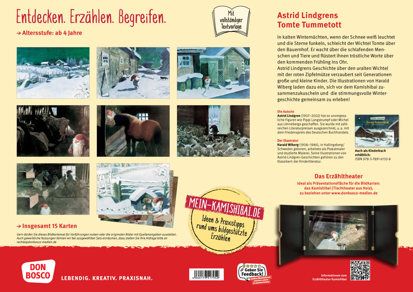 Astrid Lindgrens Wintergeschichte für das Erzähltheater: Wichtel Tomte wacht über den verschneiten Bauernhof. Kamishibai-Bildkarten für Kinder ab 4 Jahren. Tomte Tummetott: Der Klassiker von Astrid Lindgren als Kamishibai-Bildergeschichte In kalten Winternächt...