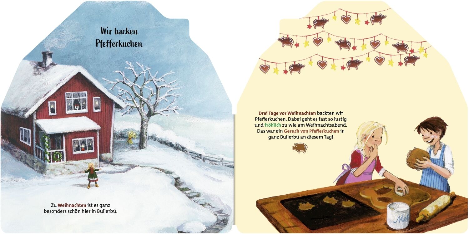 Pappbilderbuch in Schwedenhaus-Form mit ersten weihnachtlichen Geschichten aus Bullerbü für Kinder ab 2 Jahren