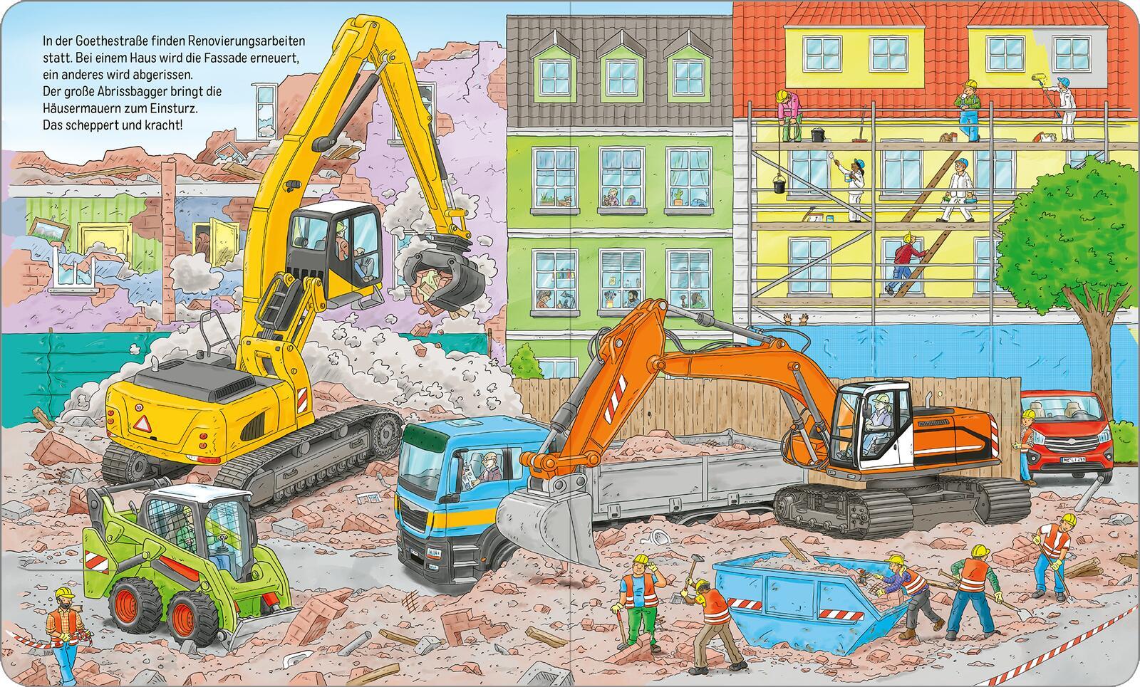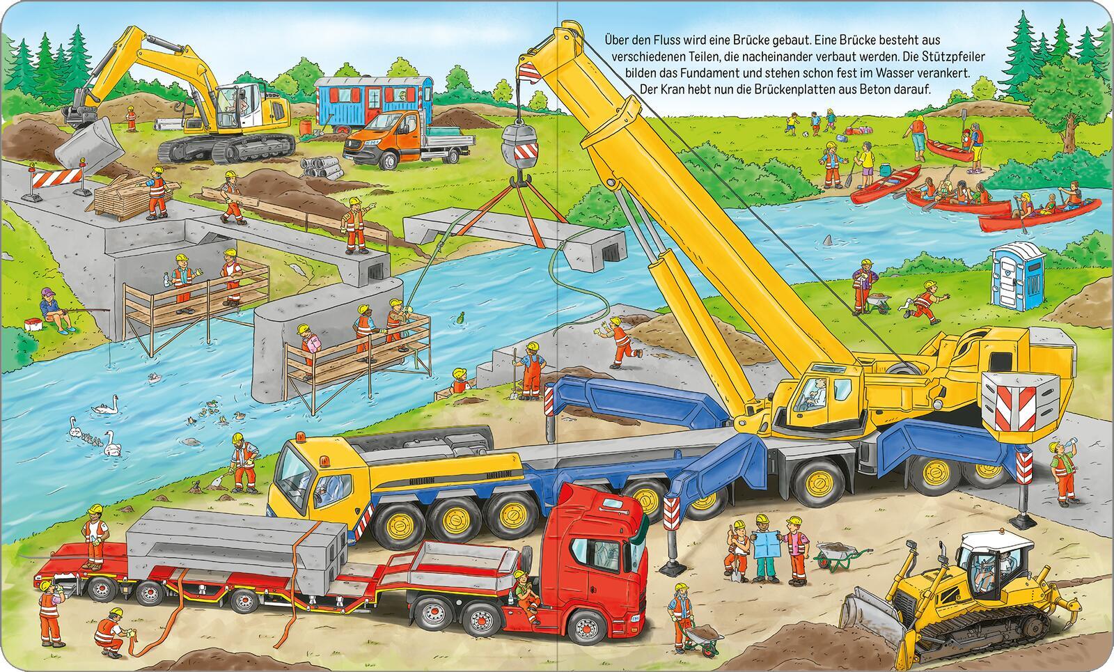 Auf der Baustelle ist was los! Komm mit auf die Baustelle, hier gibt es so viel zu entdecken! Weißt du, wie man eine Brücke baut? Was braucht man für den Straßenbau und wie wird eigentlich ein Haus renoviert oder abgerissen? Was passiert auf einer Großbaustel...