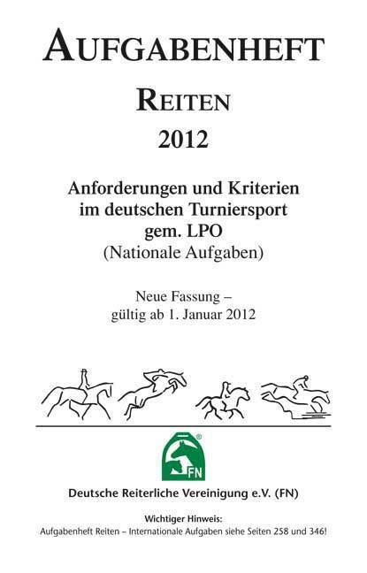 Das Aufgabenheft Reiten nationale Aufgaben enthält neben den verschiedenen Aufgaben zu Reiterwettbewerben, Basis- und Aufbauprüfungen und Dressurprüfungen auch Anforderungen für Stilspringprüfungen mit Standardanforde-rungen sowie Gelände- und Vielseitigkeitsp...