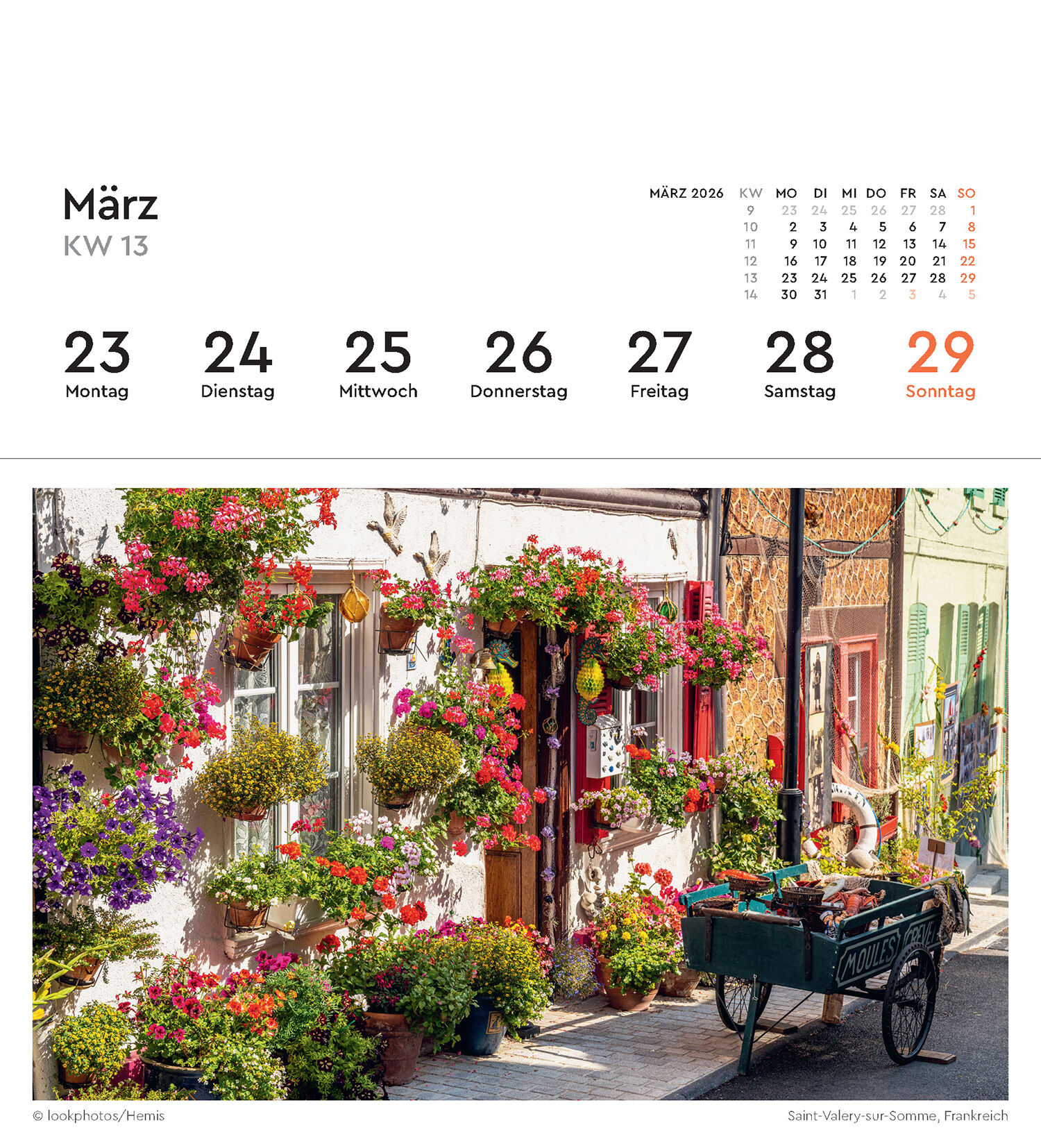Woche um Woche begleitet dieser KUNTH Postkartenkalender Aufgeblüht 2026 mit atemberaubenden Bildern durch das Jahr auf dem Schreibtisch oder als Hingucker an der Wand. Die Postkarten zum Herauslösen können dann als Gruß versendet werden. Wenn im Frühling ein...
