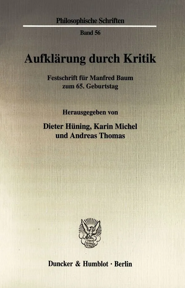 Mit dieser Festschrift zum 65. Geburtstag wollen Freunde, Kollegen und Schüler die philosophische Arbeit von Prof. Dr. Manfred Baum würdigen. Geboren am 15. April 1939, wurde der Geehrte im Jahre 1970 an der Albertus-Magnus-Universität zu Köln mit einer Arbeit über "Die transzendentale Deduktion in Kants Kritiken. Interpretationen zur kritischen Philosophie" von Karl-Heinz Volkmann-Schluck und Ludwig Landgrebe promoviert. Nach einer Zwischenstation am Hegel-Archiv der Ruhr-Universität Bochum erfolgte im Jahre 1981 die Habilitation an der Universität-Gesamthochschule Siegen mit einer Studie über "Die Entstehung der Hegelschen Dialektik". Im Jahre 1993 wurde Manfred Baum als Professor für Philosophie an die Bergische Universität Wuppertal berufen. Er fungiert seit 1996 als Mitherausgeber der Kant-Studien, seit Oktober 1999 bekleidet er das Amt des 1. Vorsitzenden der deutschen Kant-Gesellschaft. Darüber hinaus ist Manfred Baum seit 1995 Leiter des Wuppertaler Julius-Ebbinghaus-Archivs und seit 1997 Mitglied der Fichte-Kommission der Bayerischen Akademie der Wissenschaften. Im Zentrum der Forschungen von Manfred Baum steht die Philosophie Immanuel Kants. Aber auch die Philosophie der Antike, der Aufklärung und des Deutschen Idealismus hat Baum immer wieder zum Gegenstand der Interpretation gemacht. Diesen Schwerpunkten und der Bandbreite von Manfred Baums philosophischem Interesse möchte die Festschrift Rechnung tragen. Die Beiträge der ersten Abteilung der Festschrift thematisieren den Begriff der Liebe bei Platon und den Zeitbegriff bei Aristoteles, die Studien zur Philosophie der Aufklärung behandeln die Konzeption der Familie bei Rousseau, Leibniz und den modalen Realismus sowie das Problem der anthropologischen Wende der Aufklärung. Der Schwerpunkt der Festschrift liegt bei Untersuchungen zur Philosophie Kants, die sich mit Kants Position zum Leib-Seele-Problem, mit dem Begriff der Erscheinung bei Leibniz und Kant, mit Kants Urteils- und Kategorienlehre und seiner Konzeption der Urteilskraft, mit seiner Zeittheorie und mit dem Problem der Auswahl logischer Konstanten befassen. Im Feld der praktischen Philosophie werden Kants Ansätze in der Theorie des Eigentums- und des Strafrechts sowie seine Bestimmung des Begriffs der Verbindlichkeit behandelt. Beiträge zur spekulativen Philosophie der Nachkantianer untersuchen die Bestimmung des Verhältnisses von bürgerlicher Gesellschaft und Staat sowie die Betrachtung antiker und moderner Auffassungen des Paradoxen bei Hegel. Die Philosophie des 20. Jahrhunderts ist vertreten durch Arbeiten zur Paradoxie der Subjektivität bei Husserl, zu Marc Richiers Bestimmung des Verhältnisses zwischen transfiniter Zahl und transzendentalem Schein bei Cantor und Kant sowie zu Kripkes Konzept der Apriorität. Die Festschrift repräsentiert auf diese Weise das, was für Manfred Baums eigenes Philosophieren stets von größter Bedeutung geblieben ist: Aufklärung durch Kritik.