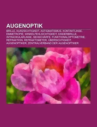 Quelle: Wikipedia. Seiten: 67. Kapitel: Brille, Kurzsichtigkeit, Astigmatismus, Kontaktlinse, Emmetropie, Winkelfehlsichtigkeit, Kinderbrille, Intraokularlinse, Sehschärfe, Funktionaloptometrie, Refraktion, Refraktometer, Übersichtigkeit, Augenoptiker, Zentral...