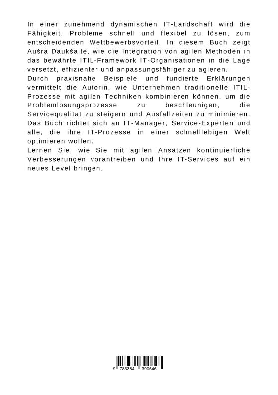 In einer zunehmend dynamischen IT-Landschaft wird die Fähigkeit, Probleme schnell und flexibel zu lösen, zum entscheidenden Wettbewerbsvorteil. In diesem Buch zeigt Aura Daukait, wie die Integration von agilen Methoden in das bewährte ITIL-Framework IT-Organis...
