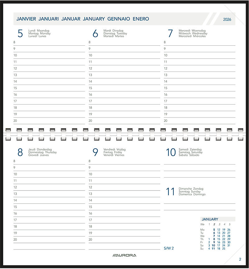 Dieser Ersatzinhalt für die Taschenagenda Novoplan mit ihrer horizontale Anordnung und Spiralbindung für eine praktische Anwendung.
