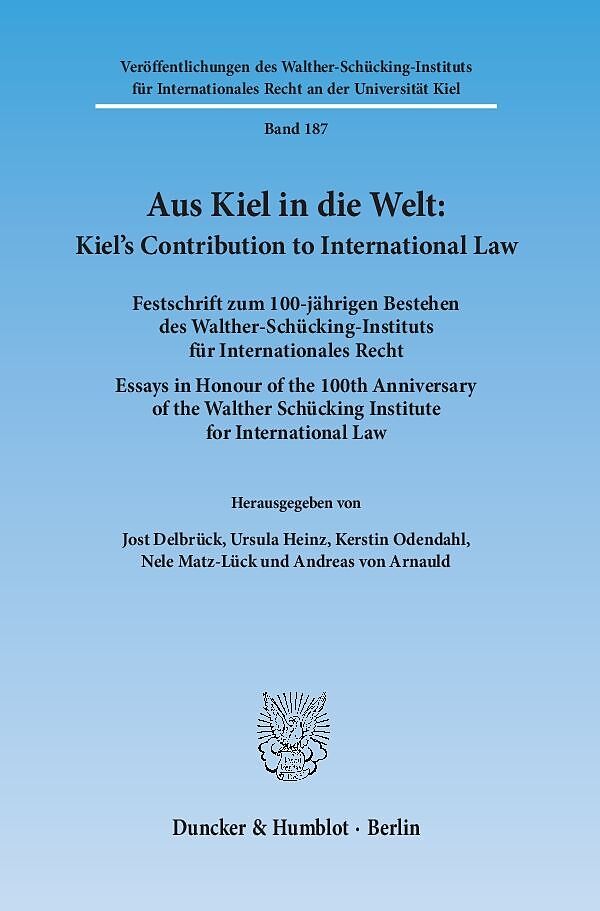 »Aus Kiel in die Welt«. Der Titel der Festschrift, mit der das 100-jährige Bestehen des Walther-Schücking-Instituts für Internationales Recht an der Universität Kiel gewürdigt wird, mag auf den ersten Blick irritieren. Der Untertitel »Kiel's Contribution to International Law« verdeutlicht allerdings, was gemeint ist: Ehemalige Mitarbeiter/innen des Instituts bekleiden Lehrstühle im In- und Ausland, sind im Auswärtigen Amt tätig, in Ministerien, in der Richterschaft und Anwaltschaft. Alle ehemaligen Doktorand/innen, Habilitand/innen und natürlich auch die ehemaligen und jetzigen Direktor/innen wurden daher gebeten, einen Beitrag für die Festschrift zu schreiben um ihren heutigen Tätigkeitsbereich aufzuzeigen und um ihre bleibende Verbundenheit mit dem Institut zu dokumentieren. Ergänzt wird der Band durch eine Liste aller Doktorand/innen und Habilitand/innen des Instituts seit 1914 sowie eine Zusammenstellung aller Bände, die seit 1915 in den diversen Institutsreihen erschienen sind.