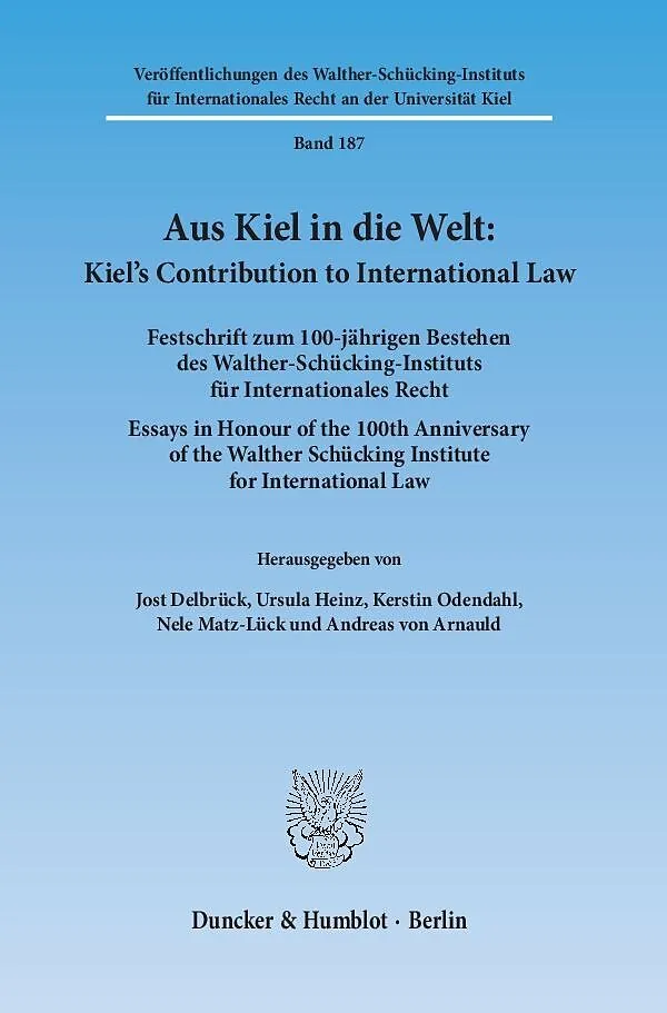 »Aus Kiel in die Welt«. Der Titel der Festschrift, mit der das 100-jährige Bestehen des Walther-Schücking-Instituts für Internationales Recht an der Universität Kiel gewürdigt wird, mag auf den ersten Blick irritieren. Der Untertitel »Kiel's Contribution to International Law« verdeutlicht allerdings, was gemeint ist: Ehemalige Mitarbeiter/innen des Instituts bekleiden Lehrstühle im In- und Ausland, sind im Auswärtigen Amt tätig, in Ministerien, in der Richterschaft und Anwaltschaft. Alle ehemaligen Doktorand/innen, Habilitand/innen und natürlich auch die ehemaligen und jetzigen Direktor/innen wurden daher gebeten, einen Beitrag für die Festschrift zu schreiben um ihren heutigen Tätigkeitsbereich aufzuzeigen und um ihre bleibende Verbundenheit mit dem Institut zu dokumentieren. Ergänzt wird der Band durch eine Liste aller Doktorand/innen und Habilitand/innen des Instituts seit 1914 sowie eine Zusammenstellung aller Bände, die seit 1915 in den diversen Institutsreihen erschienen sind.