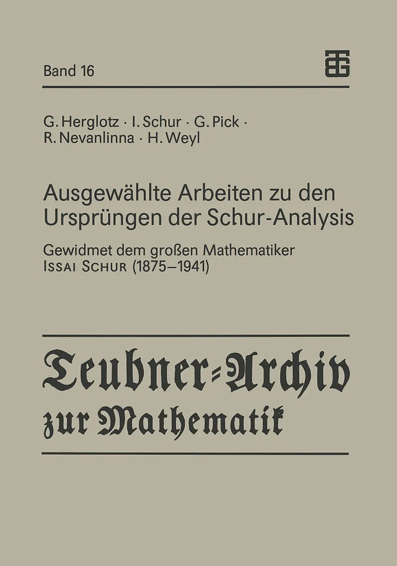 Dieser Band des "TEUBNER-ARCHIVs zur Mathematik" enthält klassische ma thematische Arbeiten, welche im Zeitraum von 1911 bis 1935 von GusTAV HER GLOTZ, ISSAI SCHUR, GEORG PICK, ROLF NEVANLINNA und HERMANN WEYL verfaßt wurden und aus heutiger Sicht die Ursprüng...
