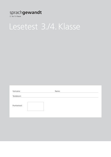 Wird nur an Schuladressen ausgeliefert. Die Lesetests dienen dazu, die Kompetenz der Lernenden im Sprachverständnis zu erheben. Die Ergebnisse aus den Lesetests werden in den Einschätzungsbogen integriert. Es liegen Lesetests für die 2. Klasse, für die 3./4. K...